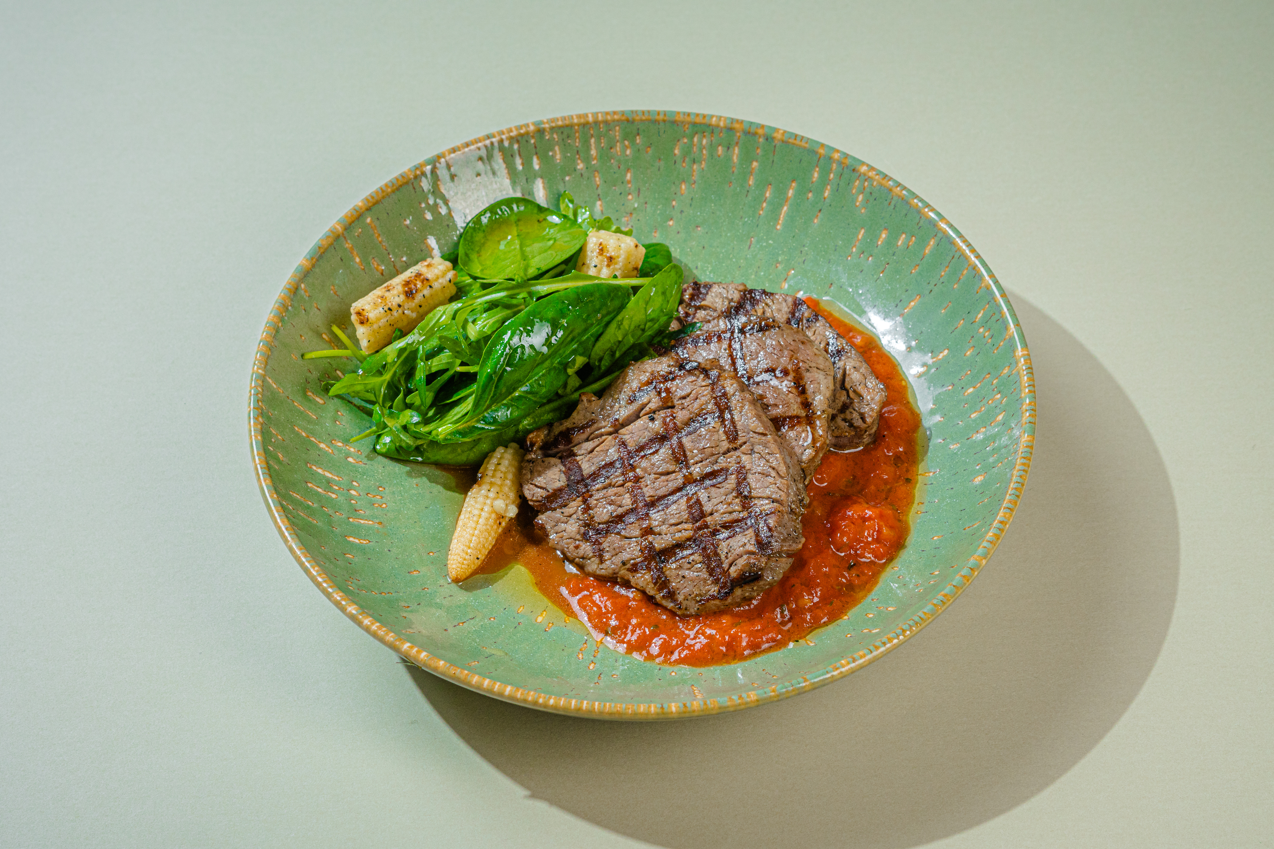 Горячее блюдо «Медальоны с соусом сальса» — это сочная говядина вырезка с ароматным томатно-чесночным соусом, мини-картофелем, консервированной кукурузой и свежими помидорами черри и руколой, а пикантный соус сальса добавит ярких нот и сделает вкус блюда по-настоящему незабываемым
