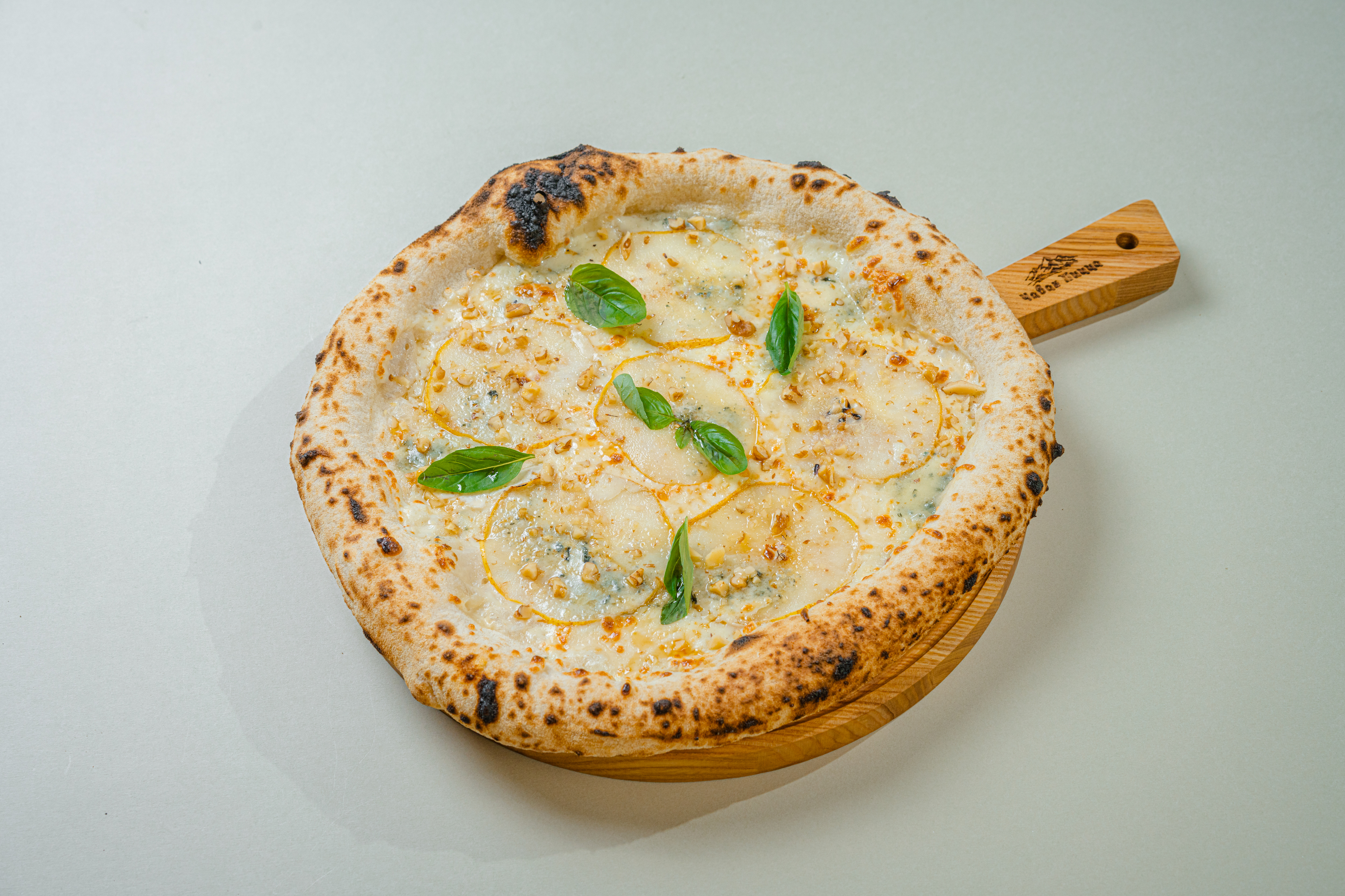Нежнейшая пицца с гармоничным сочетанием сладких и солоноватых нот: мягкое тесто, сладкая груша, пикантная горгонзола и моцареллы, оттенённые хрустящими грецкими орехами и лёгкой сладостью мёда. Свежий базилик и сыр дор блю добавляют блюду изысканности. Побалуйте себя неповторимым вкусом нашей пиццы!