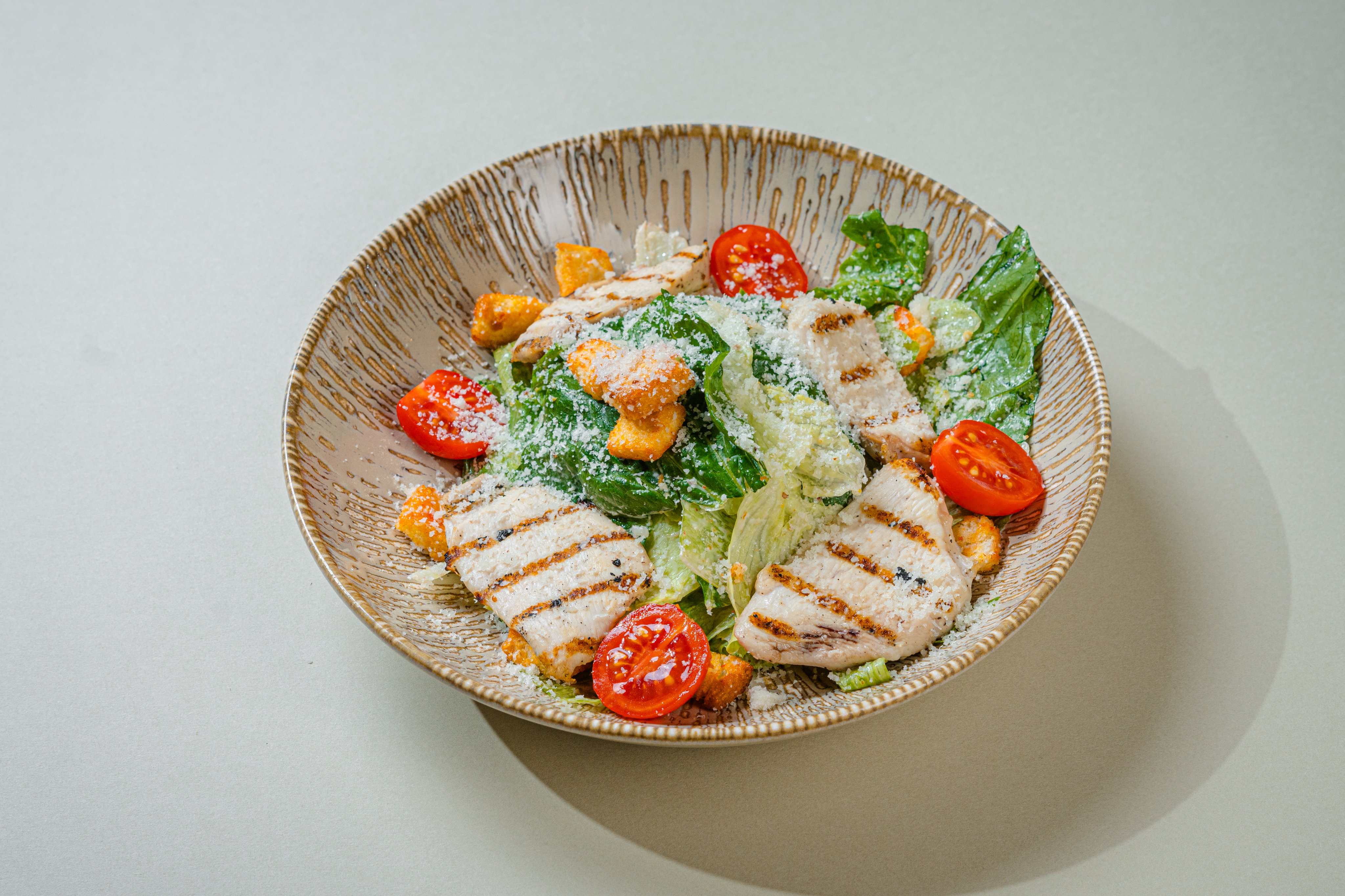 Салат «Цезарь с курицей» — идеальный выбор среди салатов! Сочный микс айсберг романо, нежное куриное филе, сладкий вкус помидоров черри и пикантность сыра пармезан создадут неповторимое гастрономическое удовольствие. Попробуйте и оцените гармонию ингредиентов!